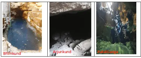 Based on prevailing hydrogeological conditions and results of georesistivity survey is concluded that many underground cavities/water pools/reservoirs namely Sadwa Gufa, Arjun Kund, Patal Ganga, Bhimkund, etc have indicated the strong weathering/karstification in limestone rock in the study area. The overburden comprised of weathered limestone or weathered granites ranges down to the depths of 5 to 30 m bgl. It is found that due to fluctuation in depths to water level in prevailing cavities, it is felt that these cavities may be directly getting recharged through groundwater as well as some of the cavities may be getting recharged directly through surface water bodies or drainage/rivers exist in the area.